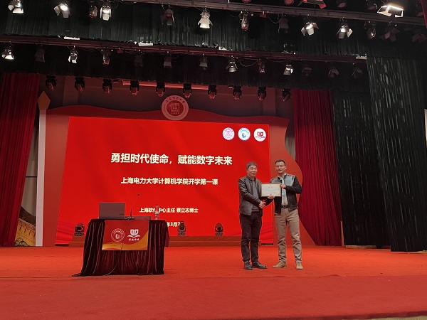 以“勇?lián)鷷r(shí)代使命,賦能數字未來(lái)”為主題,3月7日軟件中心主任蔡立志為上海電力大學(xué)計算機科學(xué)與技術(shù)學(xué)院的學(xué)生講授了開(kāi)學(xué)第一課。蔡立志主任作為上海電力大學(xué)計算機科學(xué)與技術(shù)學(xué)院的思想領(lǐng)航校外導師,用自身經(jīng)歷勉勵全院學(xué)生牢記習近平總書(shū)記“堅持科技第一生產(chǎn)力、人才第一資源、創(chuàng )新第一動(dòng)力”的重要論述,聽(tīng)黨話(huà)、跟黨走、成大事,以蓬勃的朝氣為數字經(jīng)濟發(fā)展注入新的血液。