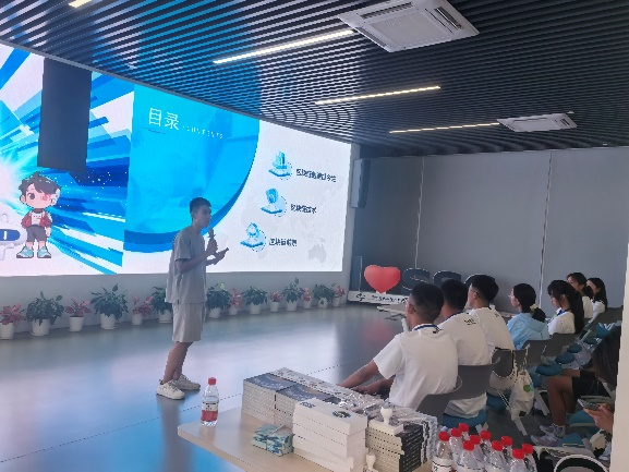 上海軟件中心科技成果轉化與市場(chǎng)部的張駿引導同學(xué)們參觀(guān)了區塊鏈生態(tài)谷一樓展廳,詳細介紹了上海軟件中心的科研成果與使命愿景。